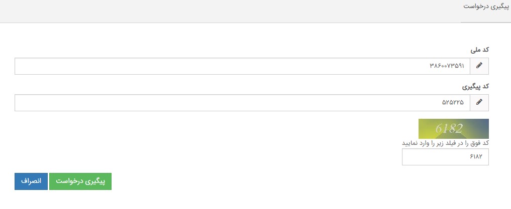 - کد پیگیری: کد پیگیری را در جعبه متن وارد نمایید.